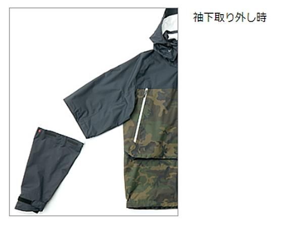 ■動きの多いジャケットには、軽量で汗のベタツキを抑える特殊プリント加工を施したレインマックス(R) 2. 5層素材を採用。パン ツには耐水性・耐久性に優れたレインマックス(R) 3層素材を採用。用途や季節に応じて袖先が取り外せるデタッチャブル仕様。フードの間口を広げ視界を確保するビューアップシステム。雨水など水滴が中に入りにくい止水ファスナーを使用。水の浸入を防ぐ2重袖口。膝の突っ張りを抑える立体裁断。