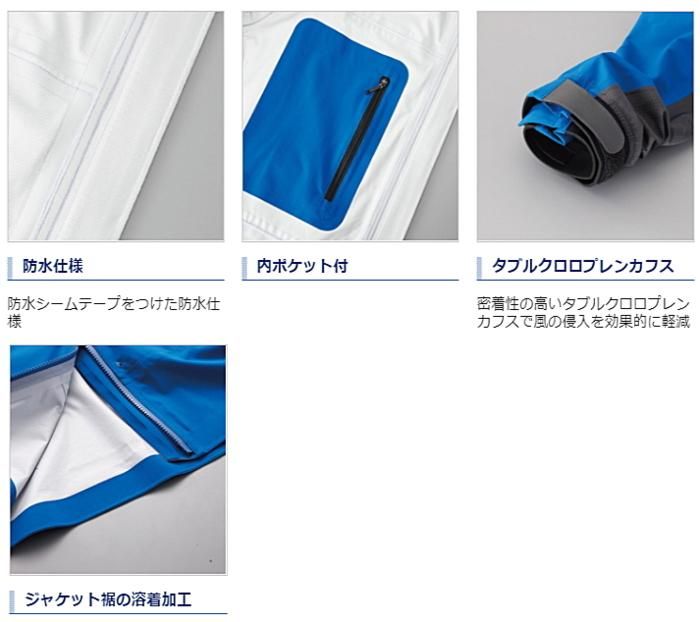 ●浸水後の水切れを考慮して、ジャケット裾は接着加工を施し、水がポタポタ垂れるのを軽減