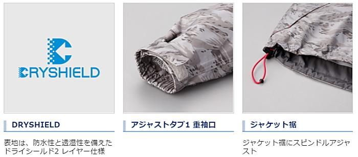 防水透湿素材ドライシールドを採用し、幅広いシーンで活躍。