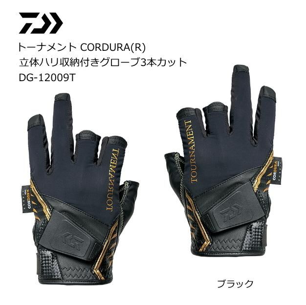 ダイワ トーナメント CORDURA(R) 立体ハリ収納付きグローブ 3本カット DG-12009T ブラック Mサイズ (メール便可)(OT) 【本店特別価格】