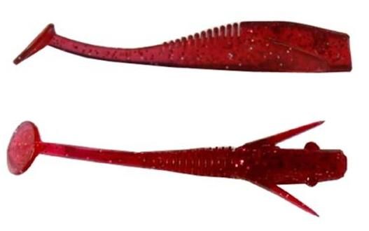 それは私がここ5年近くはまりこんで探求し続けてきたライトリグでのワインドゲームが根底にあり、これも私が制作に関わったダートジグである「尺ヘッド D」を主体に展開していたリアクションの釣りで、どうしても解決できない部分がワーム形状に残されていたからだ。それは主に水深が10mを超える瀬戸内エ リア・スーパーディープで行う「ボトムワインド」でのメガサイズ狙いや、東京湾でのボートゲームによるタンカーバース打ちなど、流れトルクの太い激流エリ アのワインドゲームで顕著に現れるが、こういったケースではストレート系ワームでは一瞬のステイの間が作れず、シャッドテールあるいはシュリンプテール形 状ワームの独壇場になる場面が多々ある事がヒントになった。要諦は「初速は早くターゲットにスイッチをいれ、水の圧力で早々に失速させて捕食の間を作る」 だ。この二つの要素を両立させるために様々なフォルムを考えた結果、小魚がホバリングする際の胸びれにヒントを得て完成された。