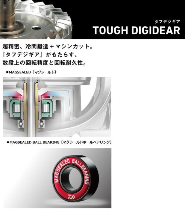 すべては勝つために。現在のキストーナメントシーンにおいて求められる性能とは何か。リール形状そのものから見直し、まさにゼロから新たなTOURNAMENTを創り上げた。45mmストロークだからこそ実現可能な中近距離から遠距離までカバーできる対応力。遠投域からトルクフル&スムーズな巻き上げ性能。起伏変化をキャスターへ伝えるブレのない回転性能。過酷なキストーナメントシーンで、初期性能を維持する高耐久性能。これらは単にスペックの向上ではない、とことん実釣にこだわり、キャスターの武器になるための進化だ。テーパー角別専用設計「LCスプール」搭載により、理想の放出性能を実現。強さと軽さをもたらすZAIONハウジング、心臓部には高負荷でも屈しないアルミマシンカットタフデジギアで武装し、さらなる高耐久性を実現。ワンピースエアベールによる至極の回転性能は、より快適に、より精悍に。シリーズ最速となるギア比「4.9」の登場により、キストーナメントシーンに衝撃を与える。「DAIWA TECHNOLOGY」のすべてを惜しむことなく投入し、飛距離、回転性能を追い求めた答えが、今ここにある。