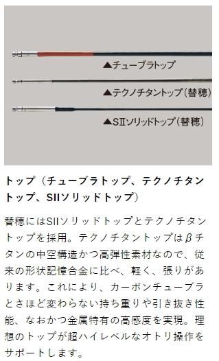 ■7代目競技スペシャルのコンセプトは「実戦」です。競技”というネーミングの通り競技会において必要とされる性能を調子毎に究極進化させました。全国各地の河川での競技 会を実際に想定して的確に対応できるようにチューンナップしました。鮎釣りにおいての一連の動作のすべてにおけるロッドの役割を解析し、ストレス無くこなせるように、各継番をより最適化しました。感度を生みだすエクストラセンサーやネジレを防止しコントロール性能を高めるスタビライザーシステムも搭載しています。替穂には超高感度のテクノチタントップとSIIソリッドトップを搭載しています。