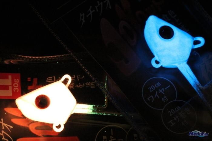 長時間発光の夜光ボディとレッドアイでタチウオを誘います。超遠投や、激しい誘いにも抜群のエサ持ち!!装着も簡単な3点エサ止めタイプのボディを採用。