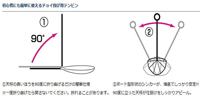 仕掛けが立ちやすい変則六角形シンカー。仕掛けが海底で立つので魚へのアピール力がアップ。