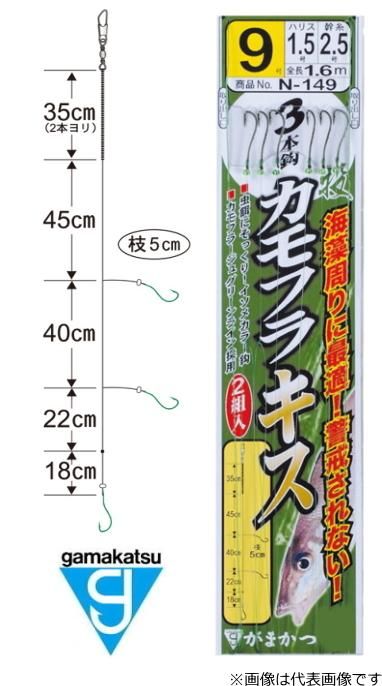 がまかつ カモフラキス投仕掛 3本鈎 9号 (幹糸2.5号 ハリス1.5号) / 仕掛け (メール便可) 【本店特別価格】 【釣具】