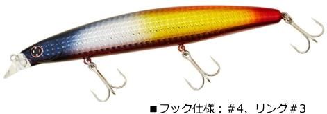 大型シーバスほど、確実に捕食できる瀕死のベイトフィッシュを偏食する傾向を利用。 ルアーのアクションをあえて抑え、瀕死のベイトフィッシュの動きを再現したスロージギングの如く、スローリトリーブで弱いウォブンロールアクションを発生するようセッティング。さらに、ウエイト保持構造(MAGLOCK)をあえてルーズに設定することで、流れの変化等の小さな衝撃で千鳥アクションが発生し、瀕死のベイトフィッシュが悶える動き(=「食わせの間」)も演出。落ち鮎、サヨリ、カビボラ、イワシ、コノシロ、ハタハタなど、シーバスが表層付近でこれらのベイトを捕食しているときは、投げてただゆっくり巻くだけでヒットを誘発できます。 (注意:スロー巻き専用アクション設定の為、早巻きでは千鳥アクションが大きくなり、時折左右に大きく暴れることあります。)