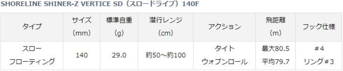 商品情報ダイワ グローブライド ショアラインシャイナーZ バーディスSD (スロードライブ) 140F DAIWA SHORELINE SHINER-Z VERTICE SD / ソルトルアー シーバス フラットフィッシュ ミノー フィッシング