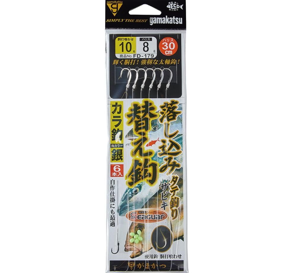 がまかつ 糸付 落し込みサビキ 替え鈎 6本 カラ鈎 (銀) FD-179 13号 (ハリス14号) / 仕掛け (メール便可) 【釣具】 【本店特別価格】