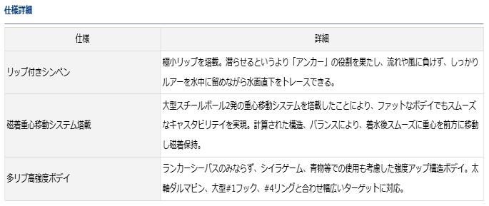 大野ゆうき監修。ランカーシーバス、青物攻略に最適な大型ファットシンキングペンシル。