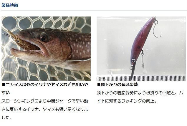 中層ジャーク、ボトムトゥイッチなどで使いやすいスローシンキング設定。