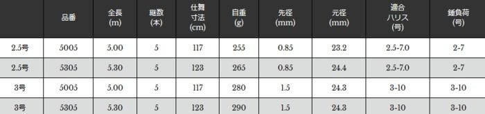 【2.5号】 磯の状況に合わせて、多彩な攻め方を可能にし、また喰い込みのいいカーボンソリッド穂先を採用。