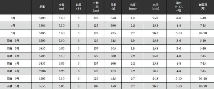 また地域の釣法に対応した両軸リール対応モデル、遠投両軸もラインアップ。専用設計された遠投用ロングモデルながらもシャープで軽量、抜群の振り抜きを誇ります。両軸モデルはオールSICガイド多点配置設定、ローシート仕様。