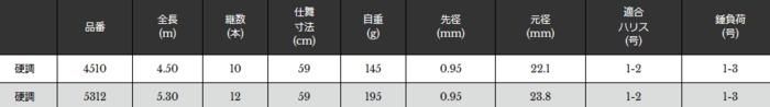 59cmの小継設計の携行性に優れるコンパクト仕舞で抜群の機動力を実現。磯、波止竿としてより高い基本性能をもちながら、持ち運びに便利で操作性に優れたシャープな先調子とパワー(1〜1.25号マイナスクラス目安)を実現、より攻撃的な釣りをサポートします。装備には、喰いこみの良い高強度タフトップソリッド穂先、トップガイドに滑りがよく絡みにくいLGSTガイド、オールステンレスフレームSICガイドを搭載したリールをしっかりと固定するステンレス製前進機構付きNSリールシート、多点ガイドセッティング等を採用、充実の仕様となっております。