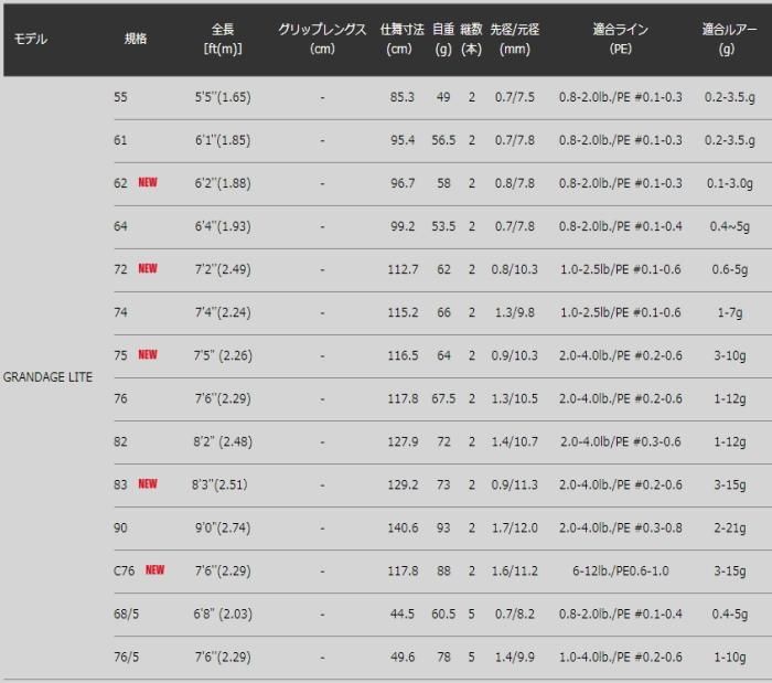 ■GRANDAGE LITE 72 (ソリッドティップ)