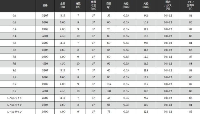 6:4〜8:2と幅広いアイテムを揃えました。多くの釣り師の方のニーズとあらゆる仕掛けに対応するテンカラ竿として、NISSINの数多くのノウハウを結集して誕生。打ち込み、誘い、引き抜きと一連の操作をバランス良く実行できる高性能の一竿です。軽いレベルラインを軽快に操れ、飛ばす事が可能な、しなやかな胴を持つレベルラインもご用意しました。