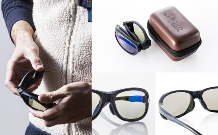 ●通常の半分サイズの付属専用ケースに収納可能な折りたたみ式偏光グラス。コンパクトになるなら、それだけ持ち出す機会も増えるのがアウトドアのセオリー。少しでも荷物を減らしたいフィッシングや旅の供に最適。最小限の荷物で夜間からウェーディングするシチュエーションにも。小さなケースに納められたのは、余裕のあるリラックスした掛け心地。視界が広い大きめのレンズサイズでも、ズレを防止するエラストマー素材のノーズパッドで快適な着用感。