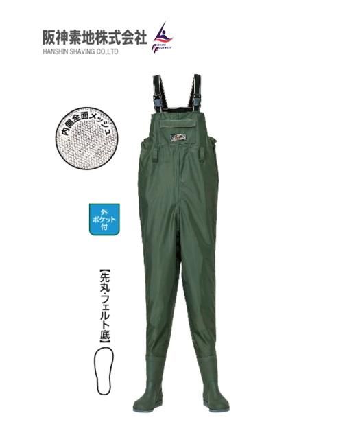 阪神素地 ドライメッシュウェーダー (チェストハイ・先丸) MW-106 ライトオリーブ 24cm / ウェーダー 【本店特別価格】