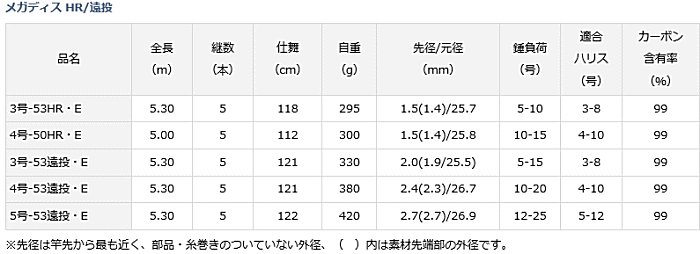 ダイワ グローブライド 17 メガディス HR/遠投 DAIWA MEGATHIS HR/ENTO / 磯竿 より遠くへ、そして剛腕なパワーを。 HR(本流)竿・遠投竿はESS+HVFナノプラスで設計構築したこだわりのブランクスにより、従来モデルを凌ぐパワーと高次元のパフォーマンスを実現。さらにX45を搭載することで遠投時のブレを抑制し、魚とのやり取りではV-JOINTによるスムーズな節のつながりによりロッド全体のパワーでターゲットを浮かすことが出来る。 リールシートには遠投時にしっかりと手にフィットし、大型魚とのファイトにおいてもリールがガタつかないエラストマー一体スーパーフィットパイプシートを採用。フラッグシップに迫るポテンシャルを体感せよ。 ■発売年:2017年