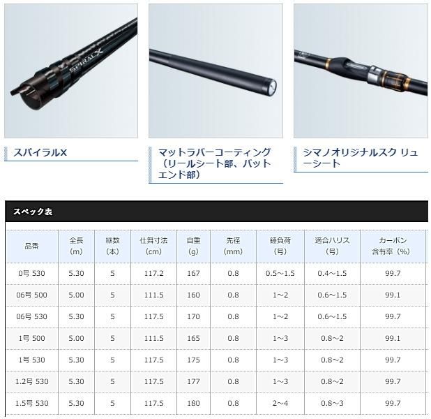 シマノ 19鱗海 りんかい リンカイ AX SHIMANO RINKAI AX / 磯竿 黒鯛専用の本質を秘めたベーシックロッド。 違和感なく喰い込ませる穂先、魚を怒らせないしなやかな曲がり、そして柔らかいエサにも対応した遠投性能。鱗海シリーズの美点をしっかりと受け継いだベーシックロッド・鱗海AXがシマノオリジナルスクリューシートを搭載してフルモデルチェンジ。ネジレ、つぶれ強度に優れたスパイラルXの本格的胴調子は大型黒鯛にも臆することなく、じわりと間合いを詰めていく。黒鯛専用ロッドの本質が鱗海AXには秘められています。 ■スパイラルX ■タフテックαカーボンソリッド穂先 ■マットラバーコーティング(リールシート部、バットエンド部) ■シマノオリジナルスクリューシート ■トータルガイドバランスシステム ■全ピースガイド合わせライン ■竿袋付 ■発売年:2019年