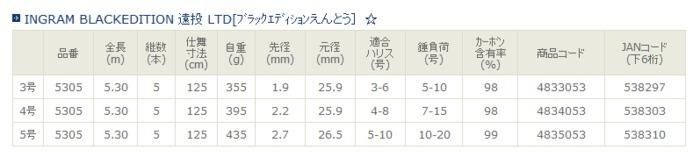 宇崎日新 nissin イングラム ブラックエディション 磯 エルティーディーINGRAM BLACK EDITION 磯 LTD 磯竿 遠投 カゴ竿 ロッド 大反響をいただきましたイングラムブラックエディションISOに引き続き、遠投シリーズにもBAT部に4軸カーボンを搭載した『イングラムブラックエディション遠投LTD』の登場です。