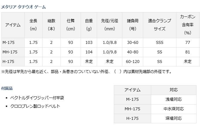 ダイワ メタリア タチウオ ゲーム MH‐175 / 船竿 【daiwa】 【釣具】 【本店特別価格】