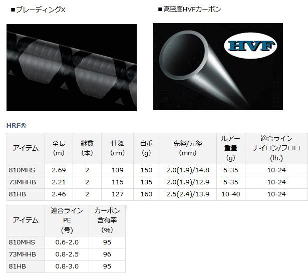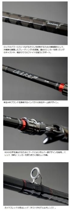 ダイワ DAIWA / グローブライド HRF (R) (ベイトモデル) ブレーディングX搭載。ソイ・アイナメをターゲットに調子を磨いた専用モデル ダイワが提唱するストイックなロックフィッシュ専用ブランド「HRF(ハードロックフィッシュ)」が最新テクノロジーを身にまとって復活。 ■73MHHB(ベイトモデル) おかっぱり(堤防メイン)から、ソイ、キジハタを狙う中層攻略(スイミング系リグ対応)も可能なMH(#1)を持ちながら、バットアクションはH(#2)で補強。また短めのセッティングのためボートゲームにも対応するオールマイティなロッド。 ■発売年:2016年
