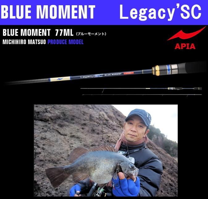 アピア レガシー SC ブルーモーメント Legacy 'SC BLUE MOMENT / ライトゲーム ルアーロッド アジング メバリング ライトソルト ショアキャスティング ライトゲームの新たなページをひらく 先鋭のラインナップ、明確に絞り込んだコンセプト。 その凡てが妥協のないパフォーマンスで身近に潜む好敵手とゲームをアツくする。 ■ブルーモーメント 77ML 尺メバル&根魚&チヌ シリーズ随一のシャープネスを誇る 先代の人気モデル、77MLの高弾性素材の構成比率を大幅に引き上げ、ティップトップからバットセクションにかけて一貫した張りの強さに磨きを掛けた。張り感のあるレギュラーファストアクションのブランクがもたらすシャープなキャストフィールと操作性は、先代から受け継がれた当該シリーズのテイストを色濃く踏襲している。 ■発売年:2017年