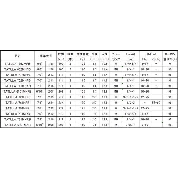 ダイワ DAIWA タトゥーラ TATULA バスロッド アメリカプロスタッフが本気で開発したバーサタイルロッド ●日本のタフなフィールドにもマッチする太径肉薄軽量設計 ●SVF・X45といったフラッグシップクラスに匹敵するダイワテクノロジーを適材適所に搭載した軽量・高感度コンセプトのハイバリューロッド ■発売年:2015年
