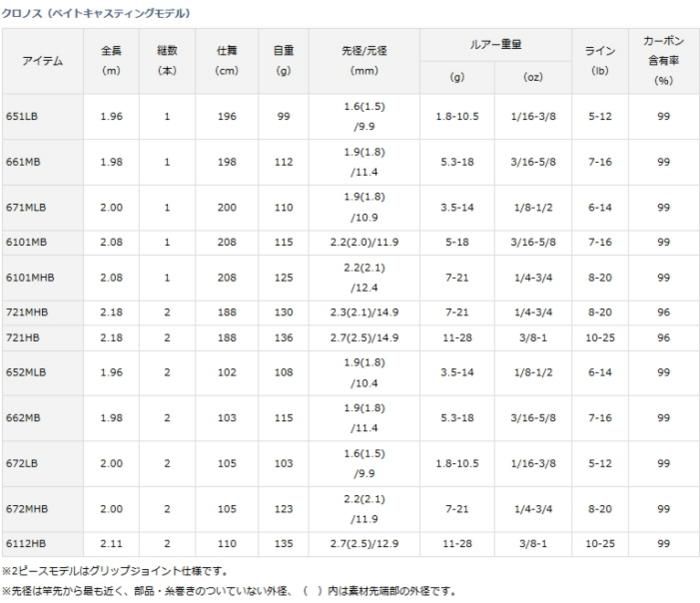 ダイワ (DAIWA) クロノス (CRONOS) / バスロッド 時代に名を刻む、ベーシックタクティクスモデル 世界標準ロッド・ZILLION&TATULAの血統を受け継ぐ、シックかつスタイリッシュなベーシック・タクティクスモデル。現代フィールドの多様なニーズに呼応する1ピース、2ピースを合わせた豊富なラインナップ。単純に同レングス同アクションをピース別で設計するのではなく、各ピースのメインユーザーの声に応えて作りこんだ充実のアイテム群。モバイル性に優れた2ピースは主に陸っぱりアングラー、1ピースはボーターを主軸としたコンセプトとなっている点にも注目したい。