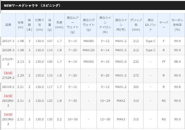 シマノ NEW 18ワールドシャウラ [SHIMANO NEW WORLD SHAULA] / バスロッド ルアーロッド BASS 真紅の衝撃。 世界が、相手だ。 日本、そして世界のフィールドを駆けて辿り着いた、バーサタイルの新たな境地。 世界中のありとあるゆるルアーターゲットに対応するため、機能を磨き上げたワールドワイドなバーサタイルロッド。どんな場所へも携行しやすい130cmの仕舞寸法はそのままに、スパイラルXコアの新採用でパワーと操作性を向上。ジギング対応のエクステンションバットや、トリガーを好みの位置に変更できるXシートなど新機能を満載した、システマチックルアーロッドです。 ■スパイラルXコア ■ハイパワーX ■レインボーチタンセラミックコート ■パーフェクションシートXT(ベイト:6ft台まで) ■Xシート(ベイト:7ft以上) ■スピニング:エアフェクトシートCI4+ ■カーボンモノコックグリップ(スピニング:7ft以上) ■ワン&ハーフ設計 ■センターカット2ピース(2831R-2、2832RS-2、2833RS-2) ■ナノピッチ ■チタンフレームSiCガイド ■トルザイトリング(2651F-3、2701FF-2、2831R-2) ■専用竿袋 ■発売年:2019年