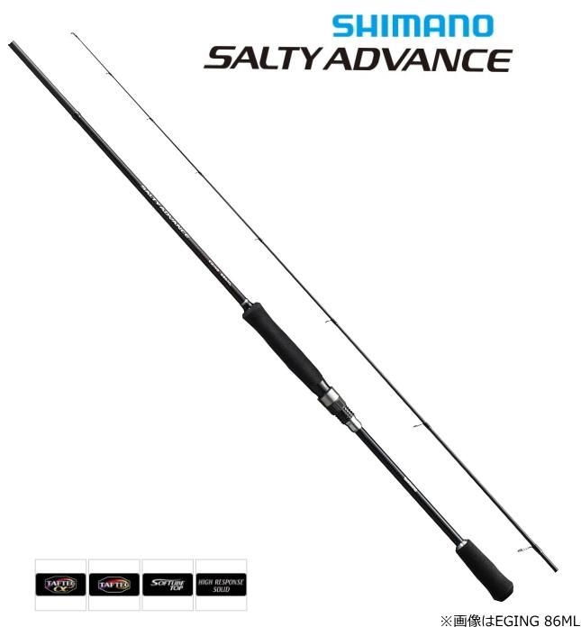 シマノ ソルティーアドバンス SHIMANO SALTY ADVANCE / ロッド ルアーロッド フィッシング ソルトゲーム ソルトルアーを本気で楽しむ、 9釣種対応25アイテム。 ■ソルトルアーゲームに本気で取り組みたい。多彩なゲームフィッシュを楽しみたい。そんなアングラーにお届けするのが『ソルティーアドバンス』。ブランクスはBB譲りのハイレベル。クラスを超える軽さ、シャープさ、パワーを実現しています。前作からガイドも一新。トラブル激減で安心感あるゲームが楽しめるオールKガイドを搭載しています。9釣種の人気アイテム25本が集結。それぞれのターゲットに応じた専用設計、デザインが施されており、迷うことなく選択が可能です。あの魚を釣ってみたい。と思ったら、『ソルティアドバンス』。 ■発売年:2019年