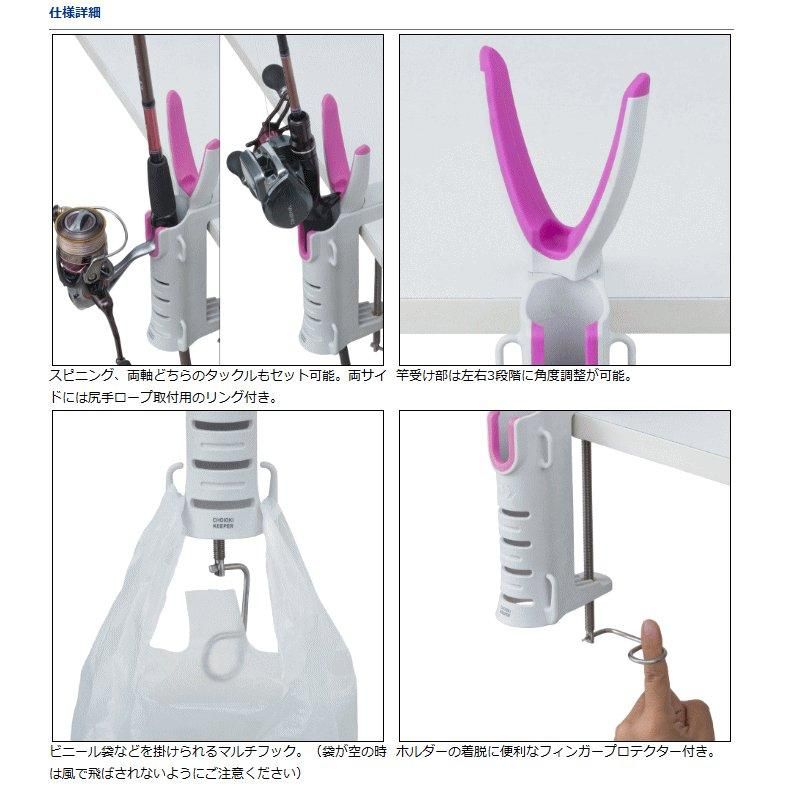 ダイワ チョイ置きキーパー DAIWA ロッドキーパー スピニング・両軸どちらのタックルにも使える船べり固定式の竿受け ■移動時にはロッドを立てかけて、エサ付けや取り込み時には竿休めとして、2通りに使える便利なチョイ置きキーパー。 ■竿の置き場所が安定するため、手返し回数の多い釣りもので使うと特に効率アップ。 ■取り付け可能幅:約0〜130(mm) ■竿立て対応径:約Φ35(mm) ■カラー:オレンジ ■発売年:2016年