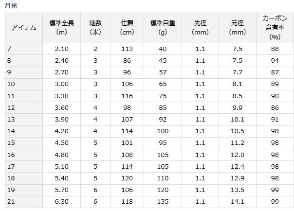 ダイワ グローブライド DAIWA 月光 げっこう GEKKOU 釣竿 ロッド へら竿 ヘラ竿 へらぶな竿 ヘラブナ竿 7〜21尺のワイドバリエーション、クラスを超えた機能を搭載した使い勝手の良い硬式先調子へら竿 スムーズな曲がりの支点移動によって高い操作性を実現する『株理論』設計を採用し、へらぶなの引きをしっかりとした胴で受け止め、浅ダナからチョウチン、管理釣り場から野釣りまで、釣り場や釣り方を問わない硬式先調子の本格仕様。一節一節手作業によって作られるその意匠は高級へら竿の代名詞とも言える「節出し段塗」。飽きることなく末永く使える逸品である。