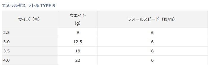 「エメラルダスラトル TYPE S」の「S」とはSlow=「ゆっくり」、Show=「見せる」の意味。その名の通り、ゆっくりフォールさせてエギをイカに見せつけるために開発。シャローエリアはもちろんだが、春イカが付きやすいウィードエリアを攻めきるためにやや急角度にゆっくりフォールする。カラーも実績の高い配色をふまえた独創的なラインナップ。
