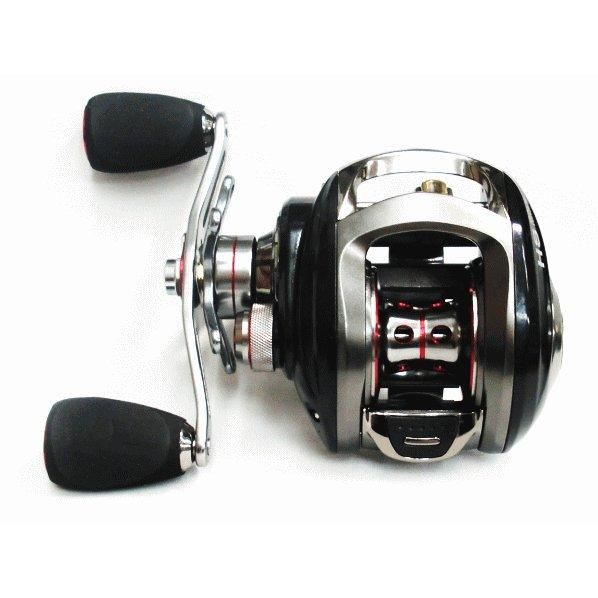 グローブライド スポーツライン HS BAIT 両軸リール(ベイトリール) 淡水でのバスフィッシングや船釣りでのアジ・メバルなどのライトゲームに最適な小型ベイトリール ■マグフォースブレーキ搭載 ■5ボールベアリング ■インフィニット ■EVAノブ ●ギア比:7.1:1 ●標準自重:204g ●最大ドラグ力:5kg ●巻き取り長さ:77cm(1回転当り) ●ベアリング:ボール/5、ローラー/1 ●標準糸巻量:ナイロン 12lb-130m ■発売年:2014年