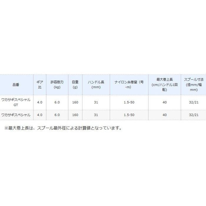 シマノ ワカサギスペシャル[SHIMANO WAKASAGI Special] / ベイトリール 両軸リール 小さな大物、ワカサギに狙いを絞った先鋭機能搭載の専用両軸リール。 タナ取りを楽にする「タナ停止クリップ」、繊細かつ軽量な仕掛けをスムーズに、スピーディーに投入するための「細密ピッチコントロール」、そして錆びに強いボールベアリング「A-RB」(ワカサギスペシャルGTに採用)など、トラブルレスで手返しよく釣っていくための機能を満載。冬の湖上でホットに遊べる、ワカサギ釣り専用のスペシャルモデルです。