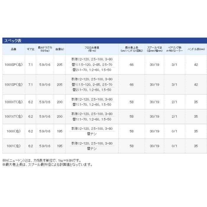 シマノ チヌマチック[CHINUMATIC]/ チヌ 黒鯛 ベイトリール 両軸リール 左右両タイプのハンドルを設定した定番モデル。 チヌ用両軸リールの定番「チヌマチック」に右モデル登場。1000SP・1001SPは青波巧SPとベストマッチングのパールホワイト&ゴールドカラーに、7.1:1のハイギヤと42mmロングハンドルを採用したハイグレードモデル。ミドルクラスの1000XT・1001XTは重厚感あふれるダークメタリックカラーで、ギヤ比を6.2:1に設定。シンプルなブラックボディにアルミスプールを組み込んだ1000・1001は、必要にして十分の性能を持つスタンダードモデルです。
