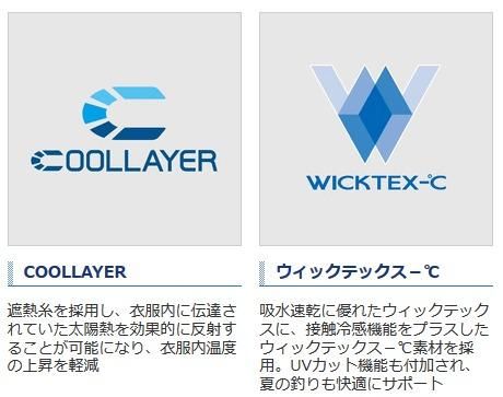 ●吸水速乾に優れたウィックテックスに、接触冷感機能をプラスしたウィックテックス−℃素材を採用。UVカット機能も付加され、夏の釣りも快適にサポート