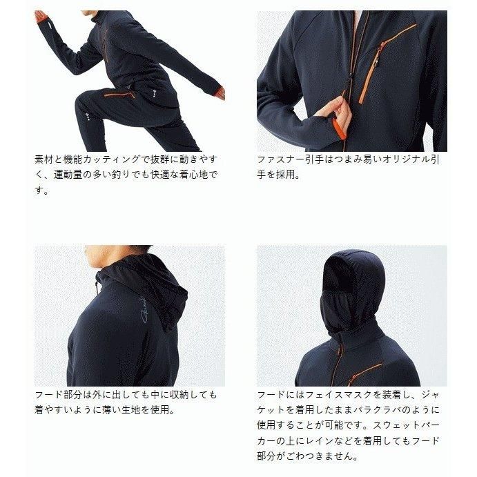 がまかつ スウェットジップパーカー GM-3533 フィッシングウェア フィッシングジャケット 防寒着 素材:本体生地 ポリエステル 88%、ポリウレタン 12%    裏地トリコット ポリエステル 100%    フード・マスク生地 ポリエステル 88%、ポリウレタン 12% 重量:0.5kg(L) ●軽量で高いストレッチ性能を持った素材を使用し、ミドラーとして着まわしやすいアイテムです。●素材が持つストレッチ性能で体にフィットし、人間の動作で発生する様々な動きに対応。
