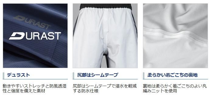 尻部にシームテープを施した伸縮自在デュラストのパンツ。