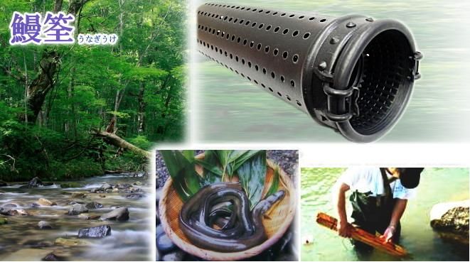 川や池・沼などでの鰻漁専用の仕掛け。大筒タイプで複数匹を同時に捕獲することも可能!