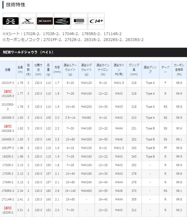 商品情報シマノ SHIMANO NEWワールドシャウラ (WORLD SHAULA) / ロッド ルアーロッド 万能ロッド ジギング ブラックバス ショアジギング