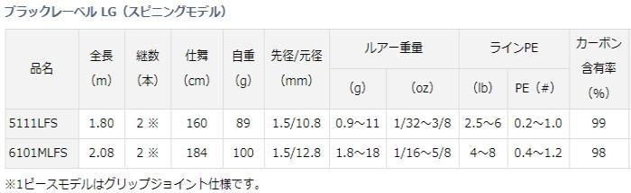ダイワ ブラックレーベル LG (スピニングモデル) 5111LFS / バスロッド 【daiwa】 【釣具】 【本店特別価格】