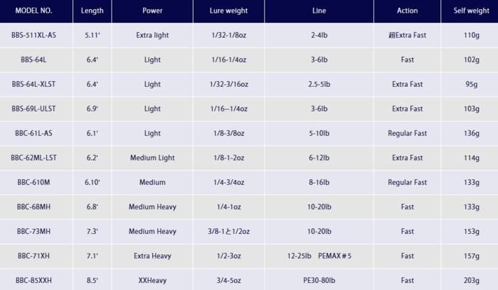 多様なタックルやフィールド、フィッシングスタイルに対応したラインナップは、プラッギング専用やジグ専用モデル、タフコンディションに特化したモデルなど、ただのマルチなバスロッドではなく1本1本全く異なる性質を持つ。