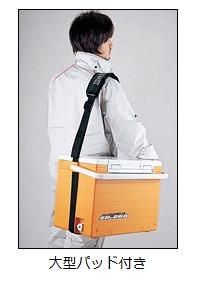 クーラーの持ち運びに便利な大型ショルダーパット付き。