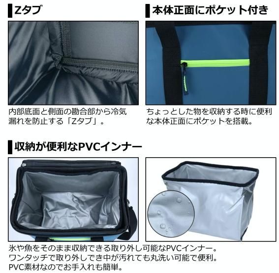 ■氷や魚をそのまま収納できるPVCインナー。ワンタッチで装着でき丸洗い可能