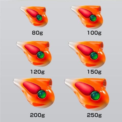 ●ドテラタイラバで実績の高い船長がこだわるカラーを再現。特にディープを意識したカラーにはアワビを手貼り。