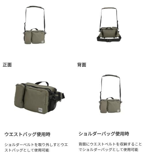 ・使い勝手を考慮した機能が盛りだくさんなヒップバッグ。ウエストベルトは収納可能でショルダーバッグとしても使用可能。本体が重くなったときにはウエストベルトとショルダーベルトを両方使うことで重量を分散させることも可能です。