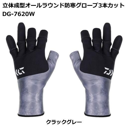 ダイワ 立体成型オールラウンド防寒グローブ3本カット DG-7620W クラックグレー XL / メール便可 / 釣具 / daiwa 【本店特別価格】